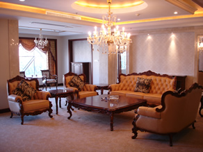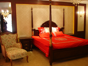 三层为豪华总统套房,设有书房、卧室、会客室、会议室、衣帽间、两个独立卫生间等。