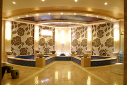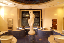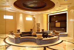 一层为温泉洗浴区,分别可接待4、6、8人,配备先进的温泉理疗洗浴设施,设有悬浮浴、针刺浴、气泡浴、水床浴、健肾冲浪浴、鸭嘴冲击浴、水捶冲击浴、脚底气泡垫、坐式气泡垫、桑拿室、汗蒸房等,保健按摩及修脚、采耳、搓背等服务项目一应俱全。